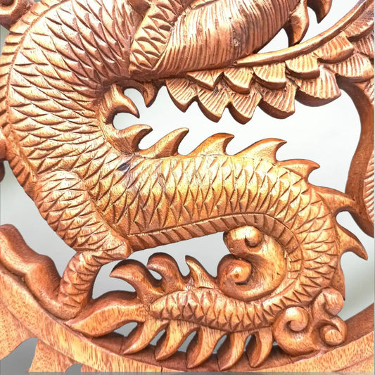 Orientalni Drveni Zidni Ukras Smeđi Zmaj - 40x2 cm