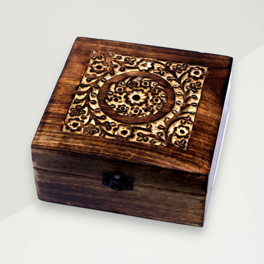Eklektična Drvena Kutija s Motivom Cvjetova 17x17 - Mango Drvo