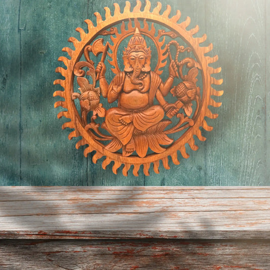 Orientalni Drveni Zidni Ukras Smeđi Ganesh - 40x2 cm